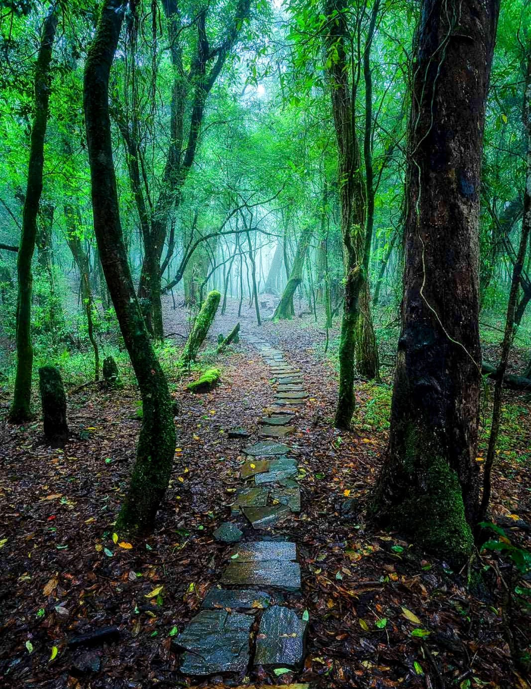 The viewpoint is only a 5-6 min of easy walk but if you need to go to the waters, it’s a 20 minutes or more trekking. You have to move through bamboo steps n mists and rains do make the path slippery. So a good paid of trekking shoes is recommended.