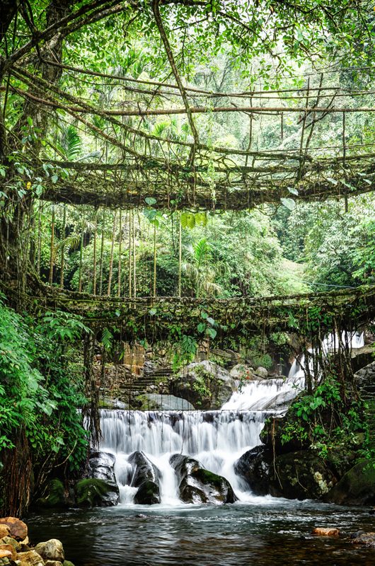 • Living Root Bridges: Unique suspension bridges grown from the roots of rubber trees, most famously the double-decker bridge in Nongriat.